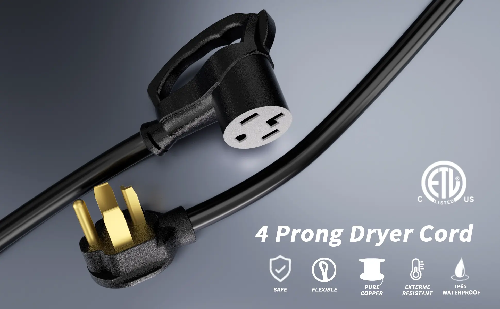 ·Sturdy & Durable: 10ft Dryer cord jacket is high temperature resistant, waterproof resistant (IP65), flame-resistant, and corrosion-resistant, overheating, making your laundry area safer; The pure copper wiring has been rigorously tested for continuity and conductivity, ensuring maximum performance and reliability