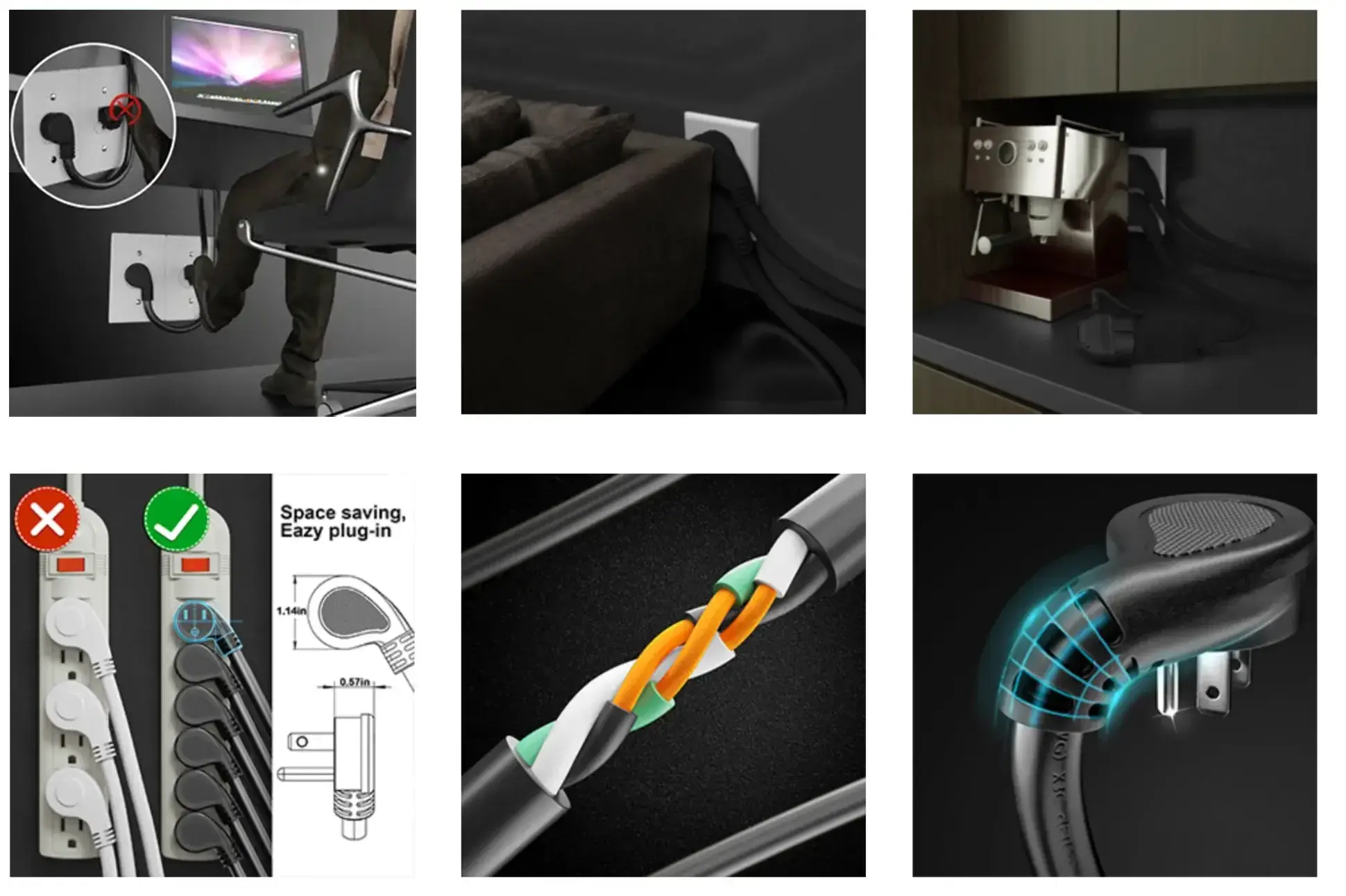 ·Flat plug & space saving: VANTECABLE low profile extension cord plug has a 45° angle S-shaped design to fit into a top wall outlet without blocking the bottom outlet; Black Extension cords with flat plugs are designed for tight spaces; bringing furniture such as sofas, TVs, desks, cabinets, and nightstands closer to the wall without damaging the plug; making better use of corner wall outlets