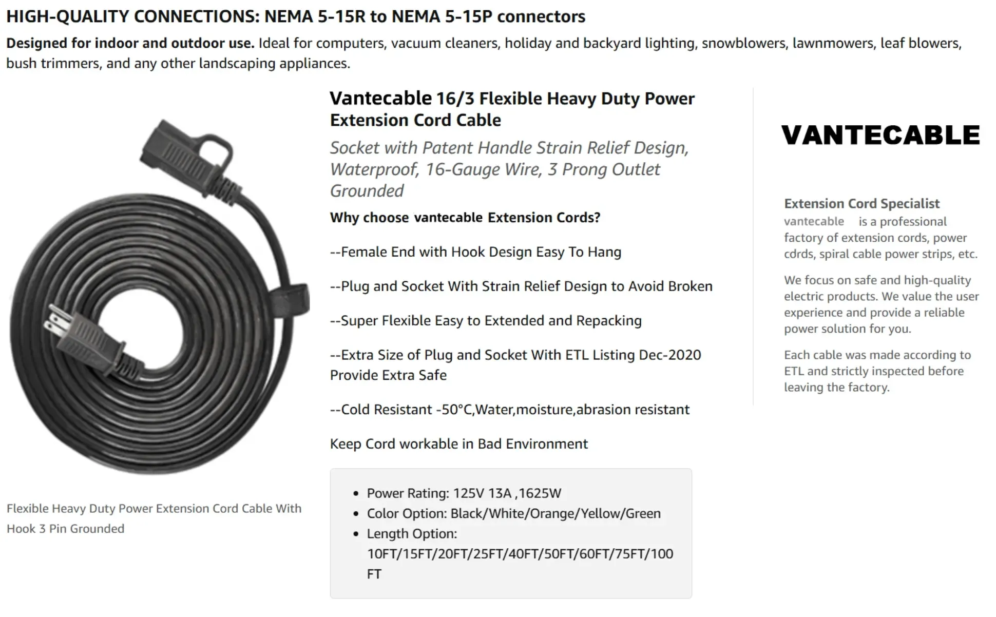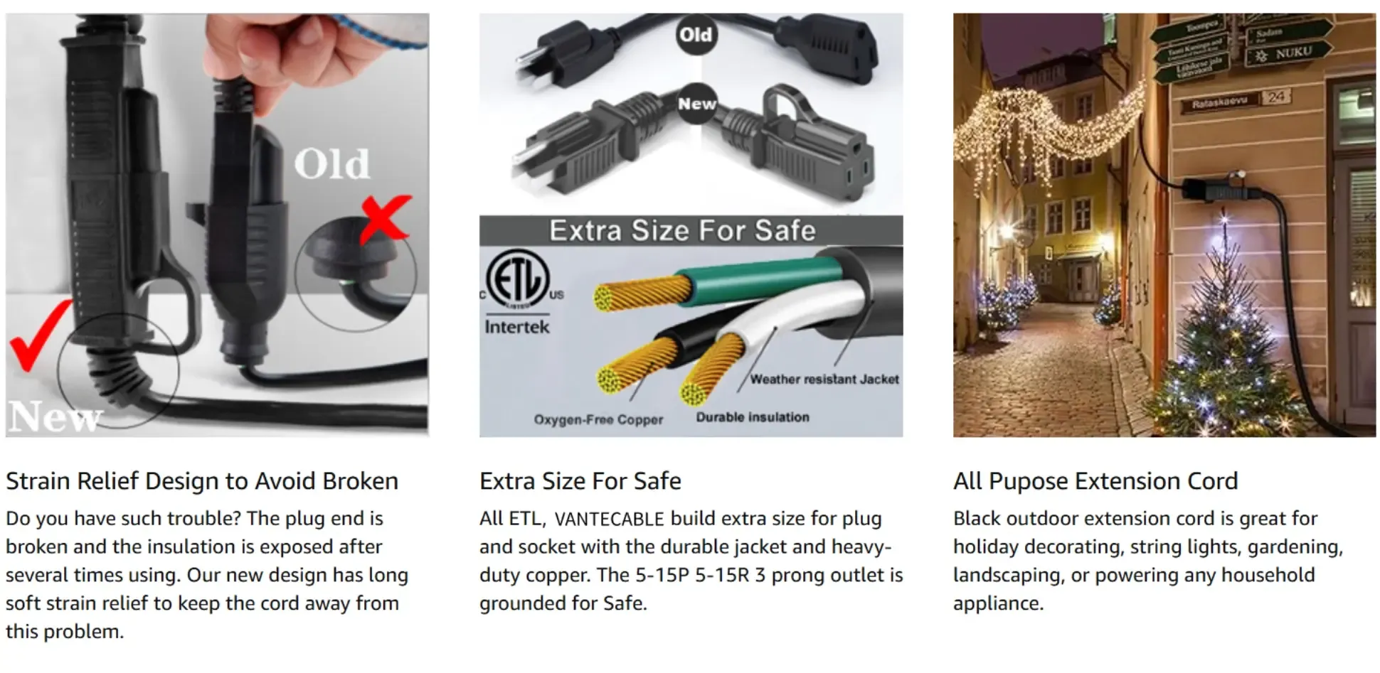·Multipurpose application: compatible with most heavy duty electrical equipment, household appliances, string lights, machines or tools; ETL/cETL Listed.