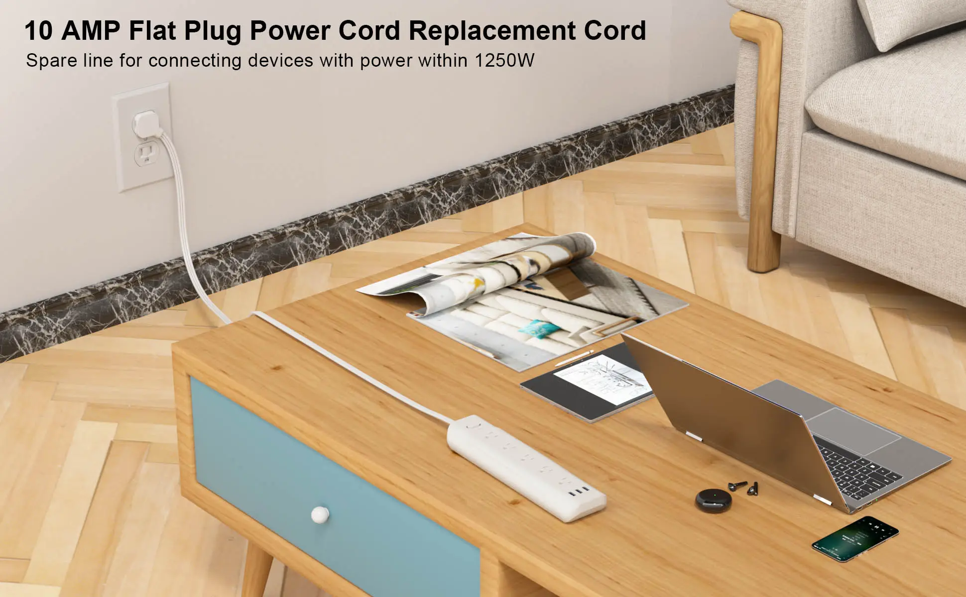 ·High Flexible & Durable: This flat plug replacement extension cord passes 65000 times great angle bending without break; extending the service life; Each Power replacement plug extension cord passes the 1500V high Voltage test before shipment keep safety in mind