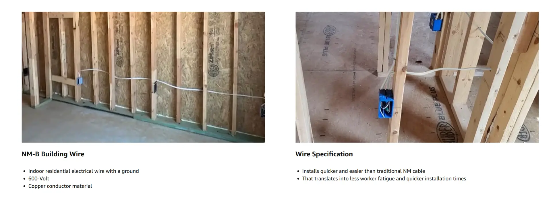 ·Durable & Safer: 2 conductor, 12 gauge solid construction has the insulated conductors (Black and White) parallel; The ground wire is wrapped with fire-retardant paper and laid parallel between the insulated conductors; Ground wire is 12 gauge solid also; The jacket is yellow on 12 gauge NM-B wire